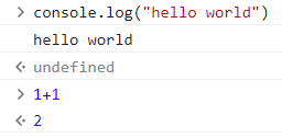 자바스크립트는 파이썬 프로그래밍 언어와 마찬가지로 인터프리터 언어이기 때문에 아래 사진과 같이 입력에 대한 실행값을 바로 확인할 수 있다.